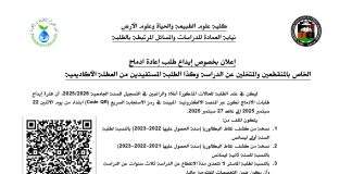 نيابة العمادة لما بعد التدرج- نتائج دراسة ملفات طلبات إعادة الادماج للسنة 2025-2026