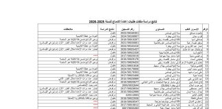 نتائج دراسة ملفات طلبات إعادة الادماج للسنة 2025-2026