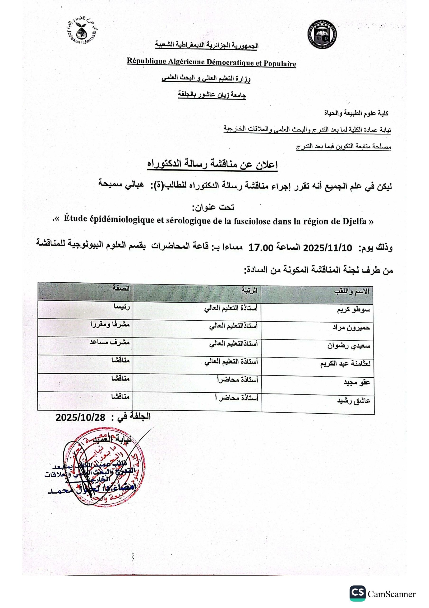 نيابة العمادة لما بعد التدرج- اعلان مناقشة اطروحة دكتوراه