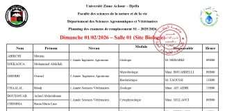 Département Sciences Biologiques- Examens de Remplacement S1 2025-2026