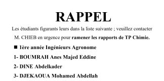 Département Sciences Agronomiques- Note Importante pour les étudiants